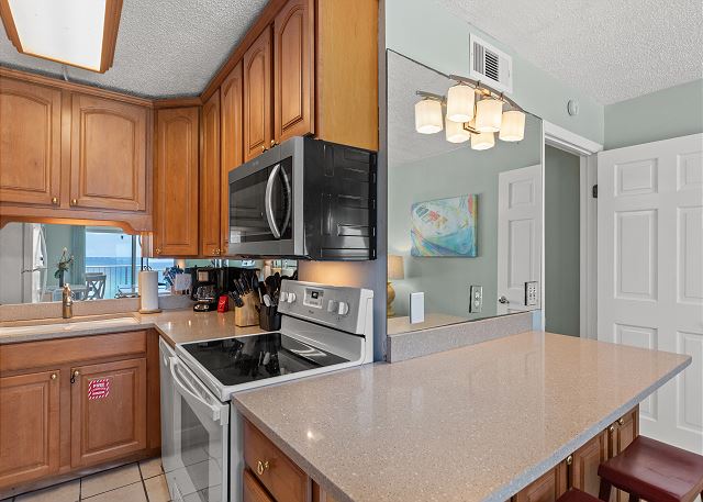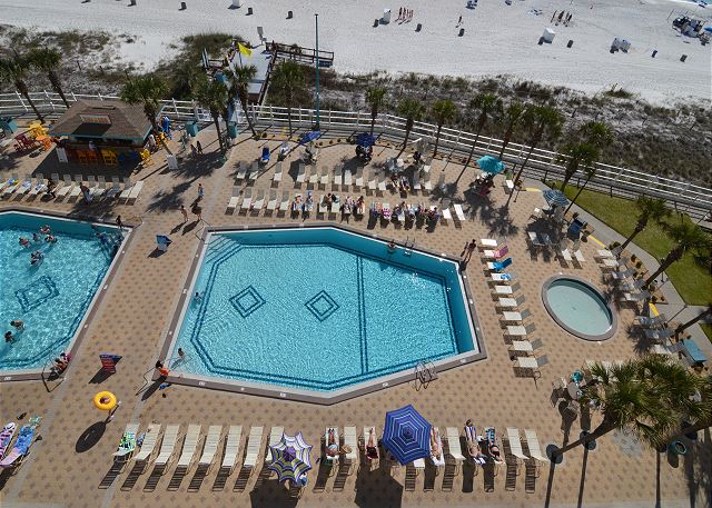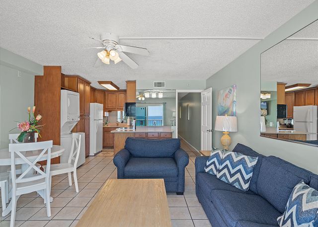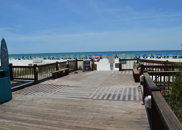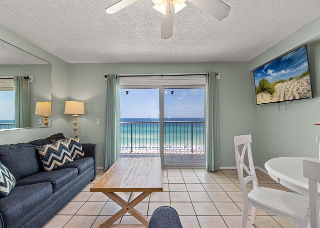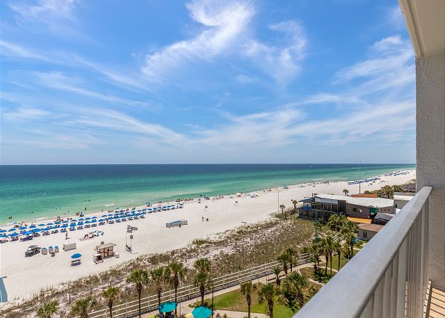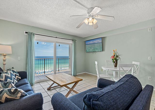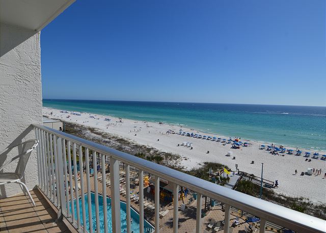 This well-maintained Summit Beach Resort condominium is conveniently located on the 8th floor of this 15-story complex. The Summit is centrally located on Thomas Drive near numerous restaurants, shops and family entertainment venues. This beautiful 8th floor unit offers an amazing gulf view from its beachfront balcony. Fully equipped kitchen with bar area, dining area, living room and separate bunk area and bedroom make for a very comfortable vacation. This condo offers a king bed in the bedroom, 1.5 baths, two twin size bunk beds in the hallway and a queen sofa sleeper in the living room. Comfortably accommodates up to 5 guests. The Summit has 3 large parking lots, tennis courts, basketball court, shuffleboard court, indoor gym, 4 pools, 3 hot tubs and dry saunas. Additionally, there is a gift shop/convenience store on-site, along with Bikini Bob's Restaurant & Bar and a poolside tiki bar.